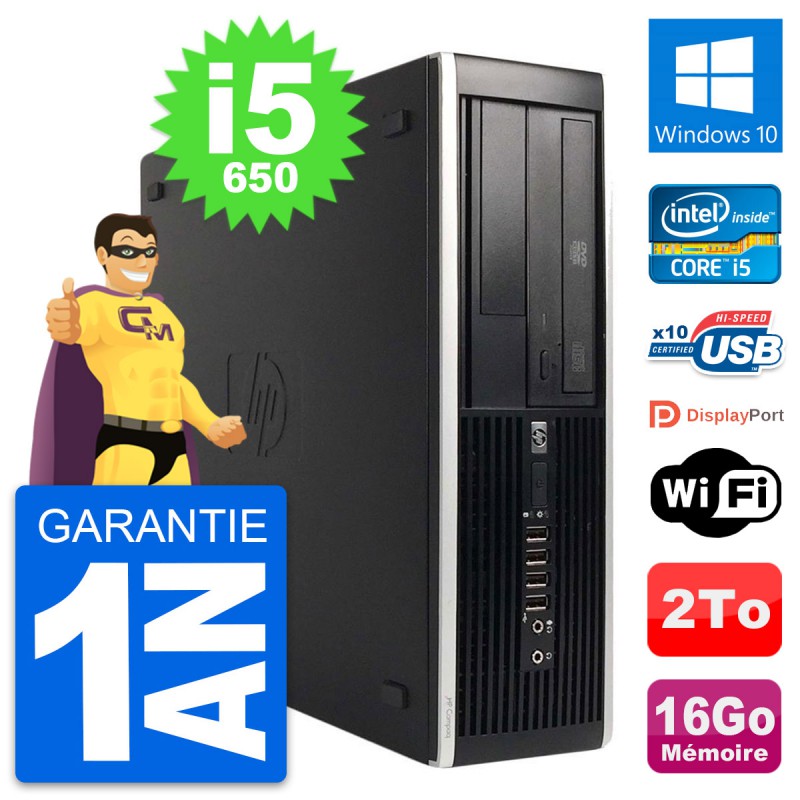 PC HP 8100 Elite SFF - Intel Core i5-650 3.2 Ghz (4 Mo) - 16 Go DDR3 - Disque Dur 3,5" 2 To - Graveur DVD - Clef Wifi USB - Windows 10 - Garantie 1 an.