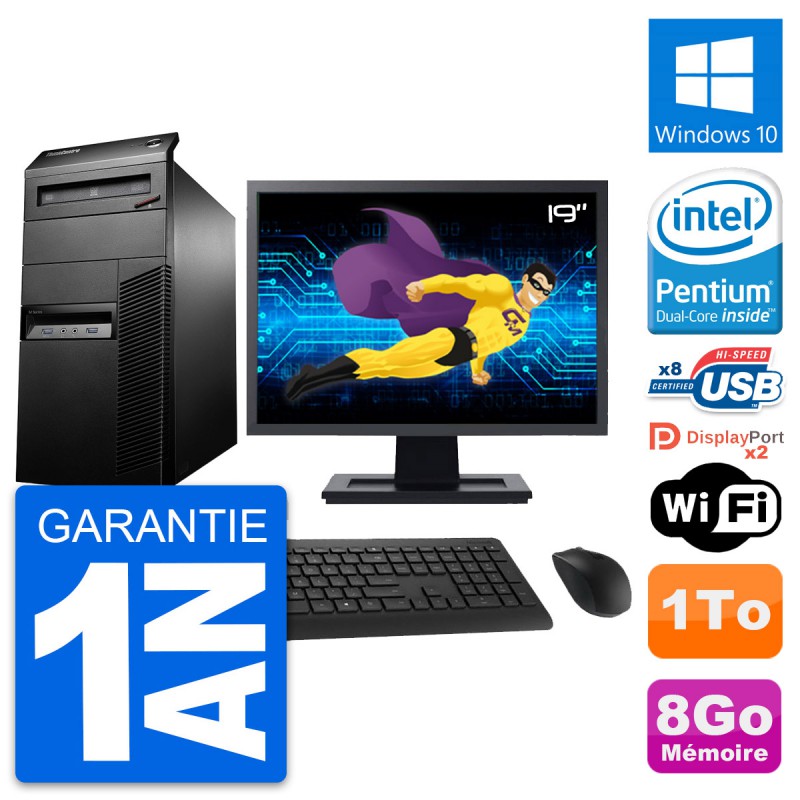 PC Tour Lenovo M93p Ecran 19" Intel G3220 RAM 8Go Disque Dur 1To Windows 10 Wifi
