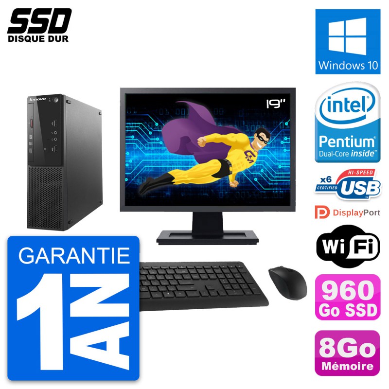 PC Lenovo S500 SFF - Intel Pentium Dual-Core G3220 3.0 Ghz (3 Mo) - 8 Go DDR3 - Disque Dur SSD 960 Go - Graveur DVD - Clef Wifi USB - Windows 10 - Livré avec Ecran 19" + clavier + souris (Marques et modèles variables) - Garantie 1 an.