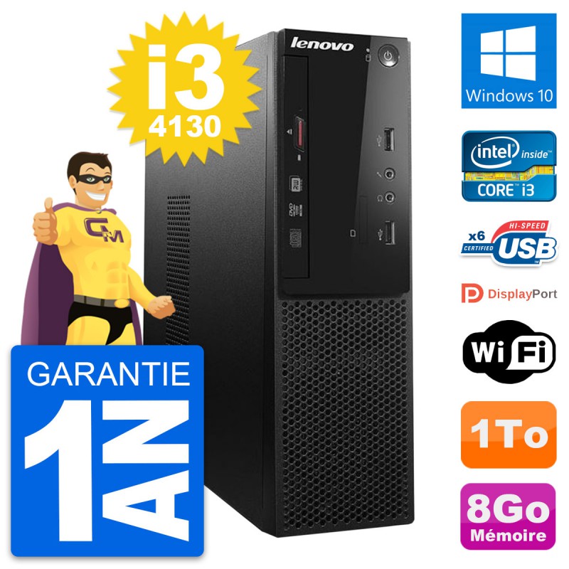 PC Lenovo S500 SFF Intel Core i3-4130 RAM 8Go Disque Dur 1To Windows 10 Wifi