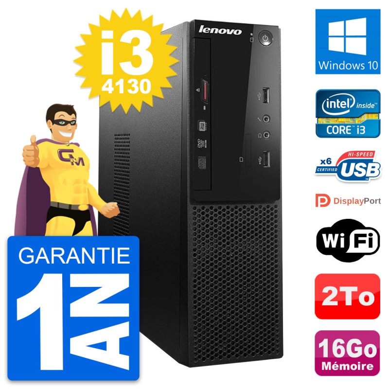 PC Lenovo S500 SFF - Intel Core i3-4130 3.4 Ghz (3 Mo) - 16 Go DDR3 - Disque Dur 3,5" 2 To - Graveur DVD - Clef Wifi USB - Windows 10 - Garantie 1 an.