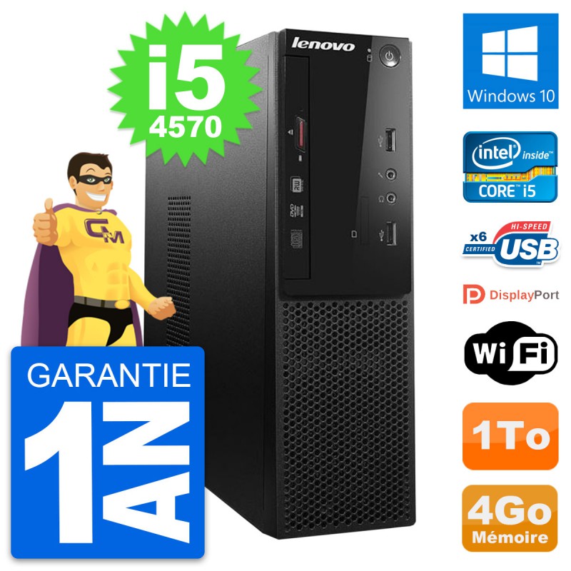 PC Lenovo S500 SFF Intel Core i5-4570 RAM 4Go Disque Dur 1To Windows 10 Wifi