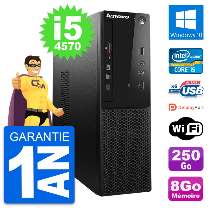 PC Lenovo S500 SFF Intel Core i5-4570 RAM 8Go Disque Dur 250Go Windows 10 Wifi