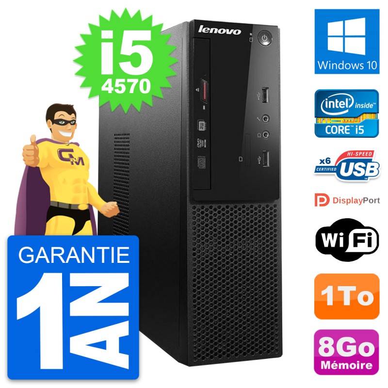 PC Lenovo S500 SFF Intel Core i5-4570 RAM 8Go Disque Dur 1To Windows 10 Wifi