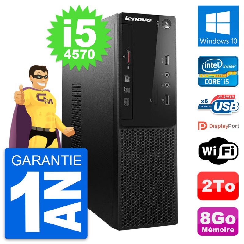 PC Lenovo S500 SFF Intel Core i5-4570 RAM 8Go Disque Dur 2To Windows 10 Wifi