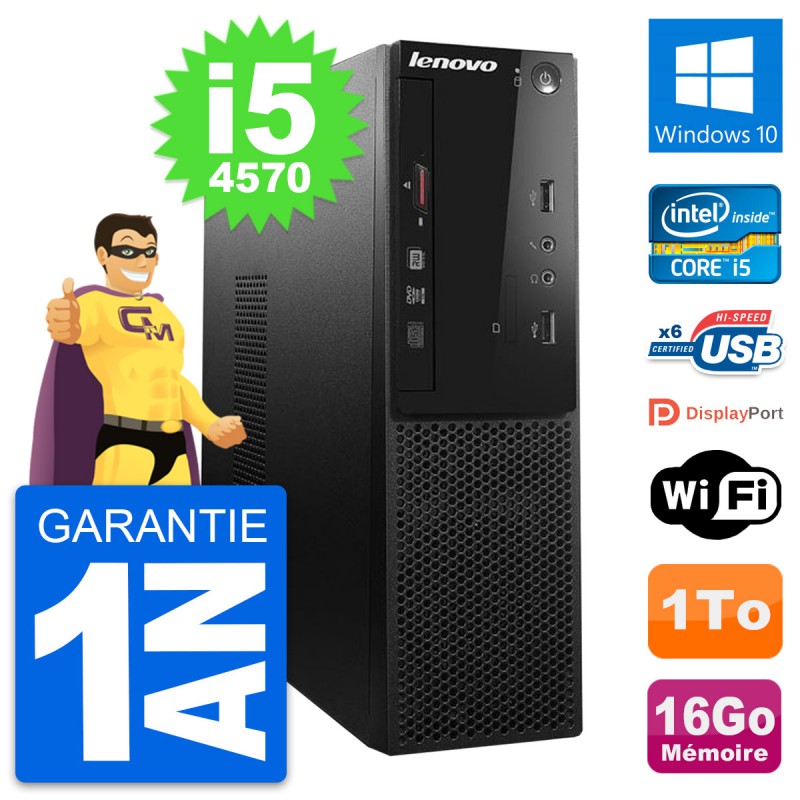 PC Lenovo S500 SFF Intel Core i5-4570 RAM 16Go Disque Dur 1To Windows 10 Wifi