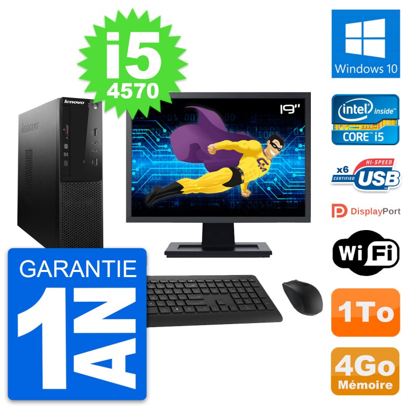 PC Lenovo S500 SFF Ecran 19" Intel i5-4570 RAM 4Go Disque 1To Windows 10 Wifi