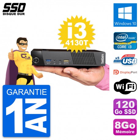 Ultra Mini PC Lenovo M93p Tiny Intel i3-4130T RAM 8Go SSD 120Go Windows 10 Wifi