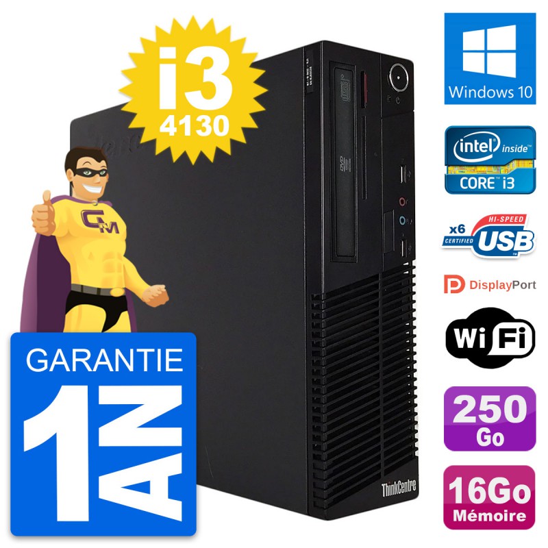 PC Lenovo M73 SFF Intel Core i3-4130 RAM 16Go Disque Dur 250Go Windows 10 Wifi