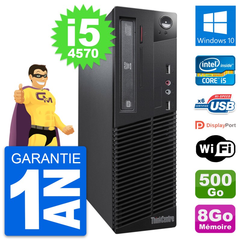 PC Lenovo ThinkCentre M73 SFF Intel i5-4570 RAM 8Go Disque 500Go Windows 10 Wifi