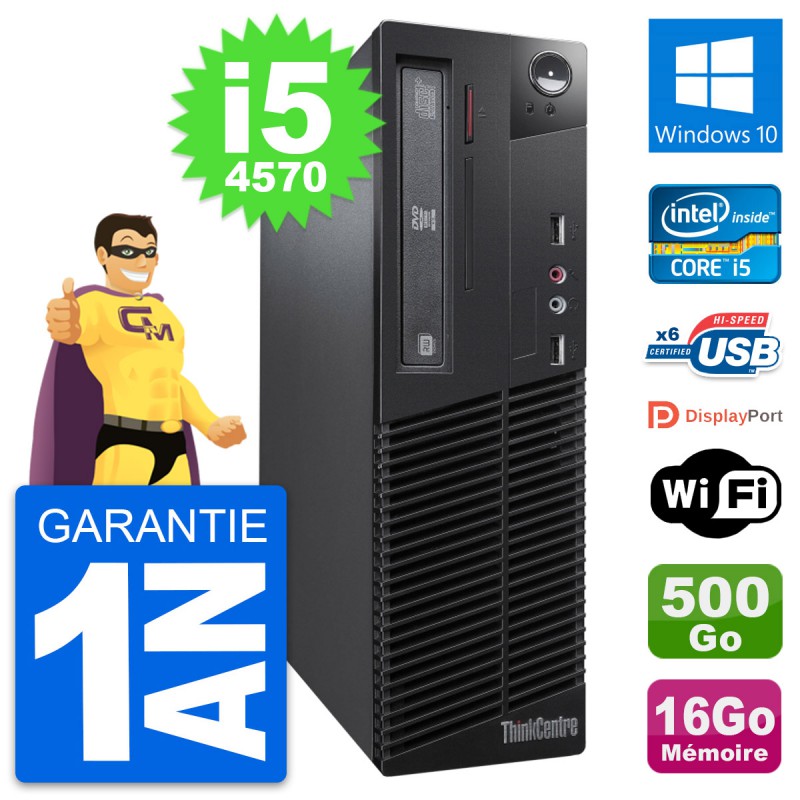 PC Lenovo M73 SFF Intel Core i5-4570 RAM 16Go Disque Dur 500Go Windows 10 Wifi