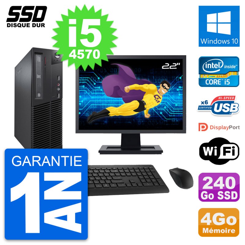 PC Lenovo M73 SFF Ecran 22" Intel i5-4570 RAM 4Go SSD 240Go Windows 10 Wifi
