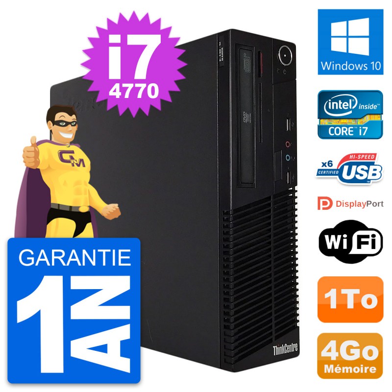 PC Lenovo ThinkCentre M73 SFF Intel i7-4770 RAM 4Go Disque 1To Windows 10 Wifi