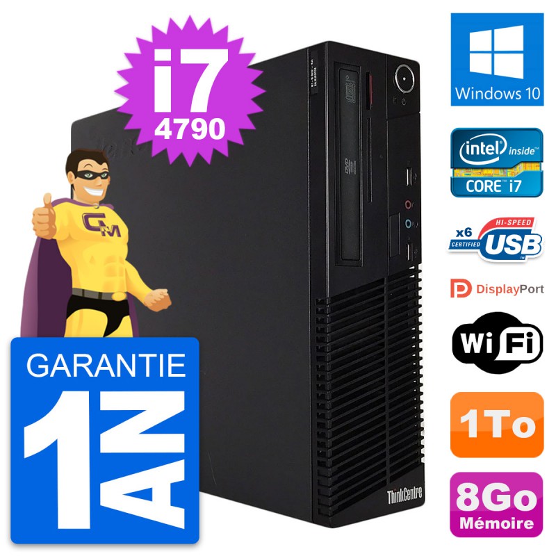 PC Lenovo ThinkCentre M73 SFF Intel i7-4790 RAM 8Go Disque 1To Windows 10 Wifi