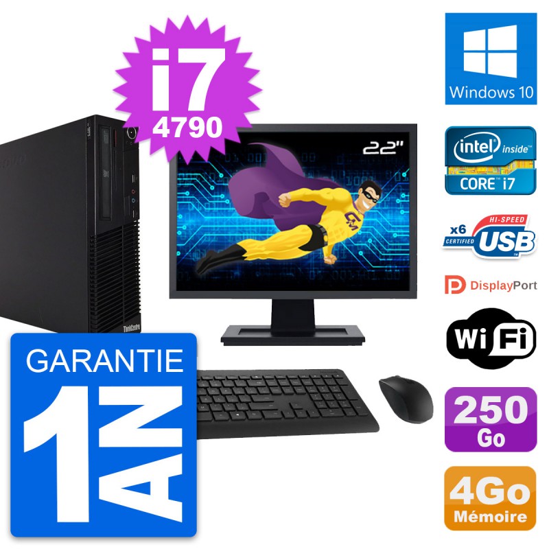 PC Lenovo M73 SFF Ecran 22" Intel i7-4790 RAM 4Go Disque 250Go Windows 10 Wifi