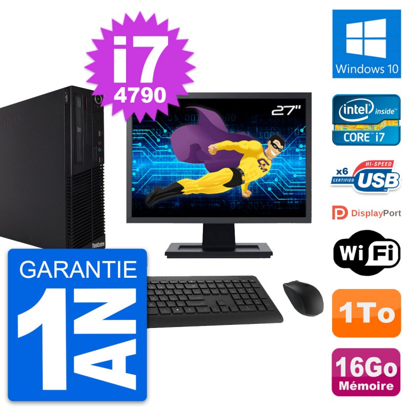 PC Lenovo M73 SFF Ecran 27" Intel i7-4790 RAM 16Go Disque 1To Windows 10 Wifi