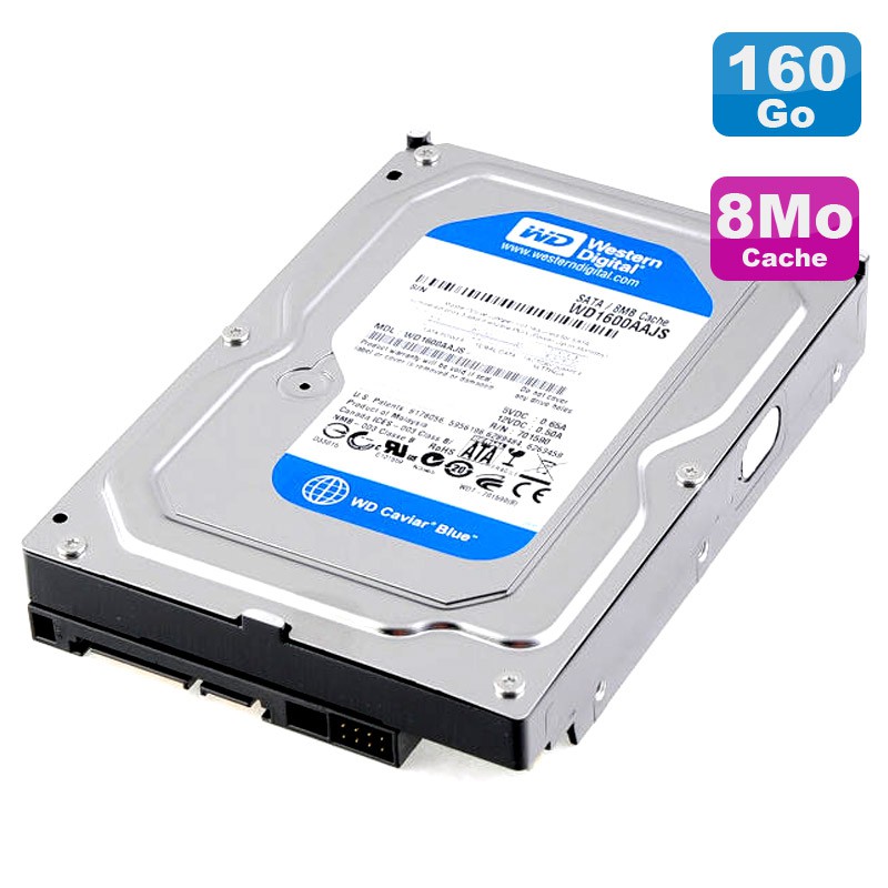 Disque Dur 160Go SATA 3.5" Western Digital CaviarBlue WD1600AAJS-75M0A0 7200 8Mo