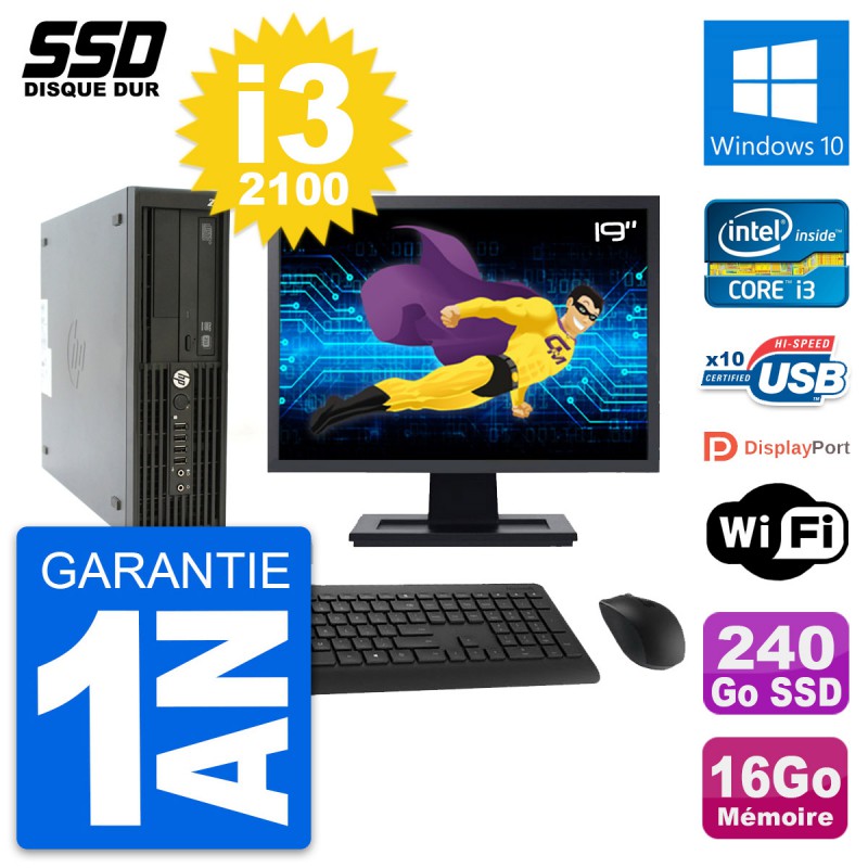 PC HP Z210 SFF Ecran 19" Intel Core i3-2100 RAM 16Go SSD 240Go Windows 10 Wifi