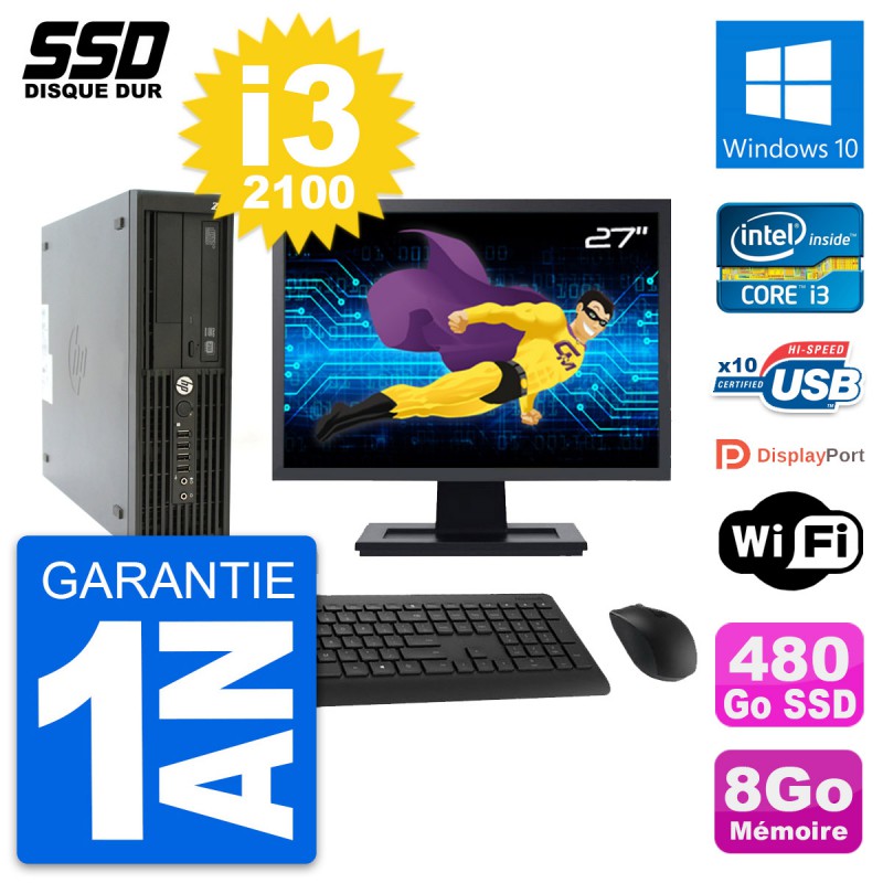 PC HP Z210 SFF Ecran 27" Intel Core i3-2100 RAM 8Go SSD 480Go Windows 10 Wifi