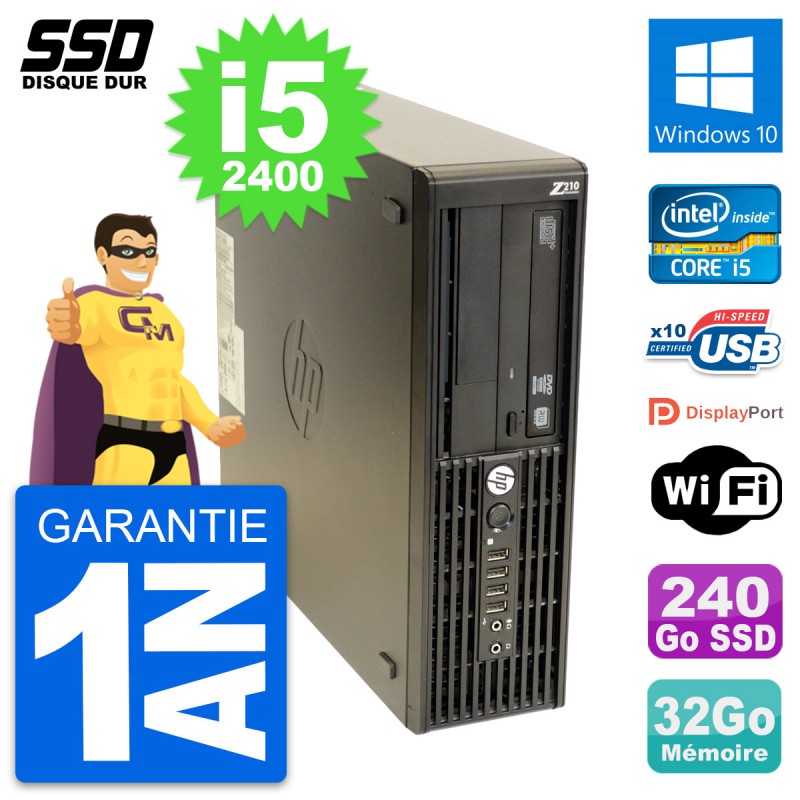 PC HP WorkStation Z210 SFF Intel i5-2400 RAM 32Go SSD 240Go Windows 10 Wifi