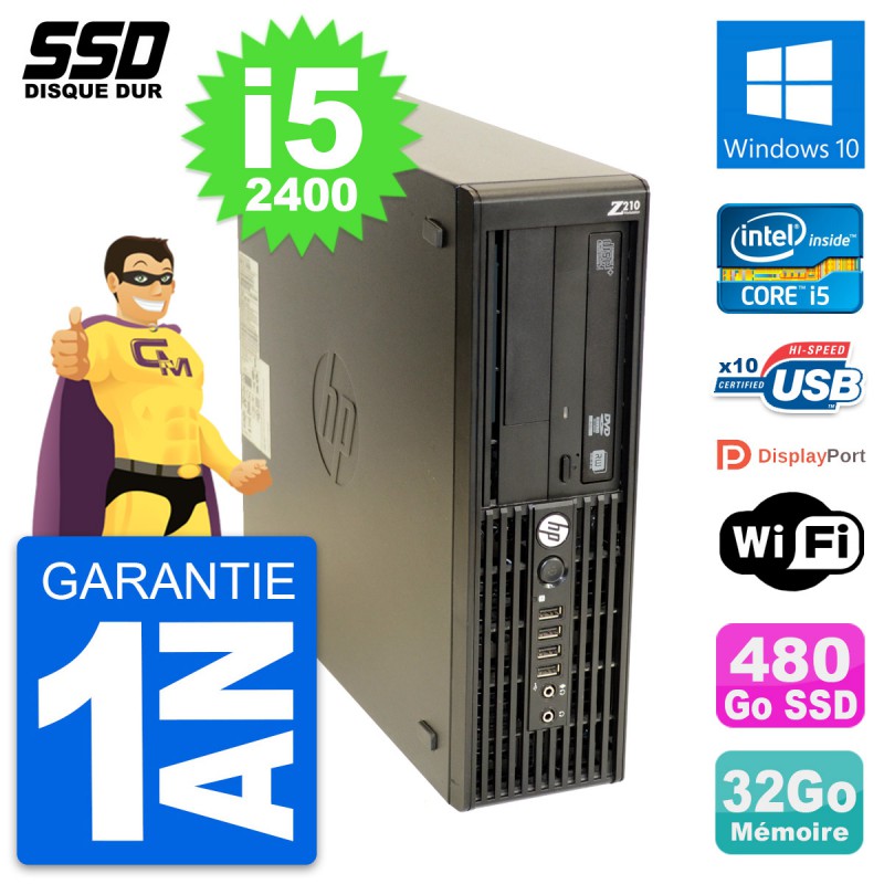 PC HP WorkStation Z210 SFF Intel i5-2400 RAM 32Go SSD 480Go Windows 10 Wifi
