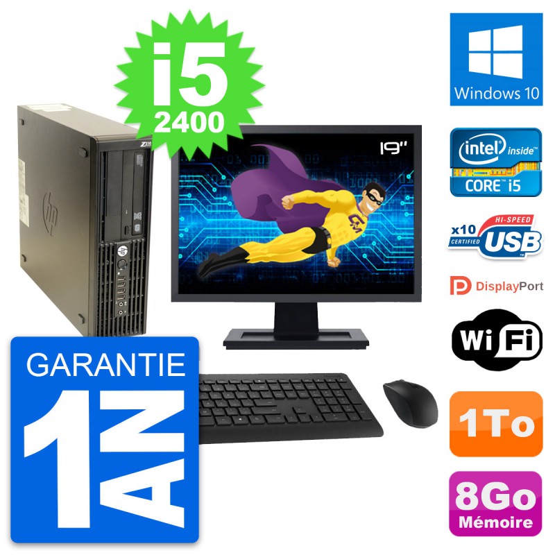 PC HP Z210 SFF Ecran 19" Intel Core i5-2400 RAM 8Go Disque 1To Windows 10 Wifi