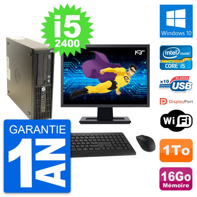PC HP Z210 SFF Ecran 19" Intel Core i5-2400 RAM 16Go Disque 1To Windows 10 Wifi