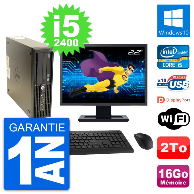 PC HP Z210 SFF Ecran 22" Intel Core i5-2400 RAM 16Go Disque 2To Windows 10 Wifi