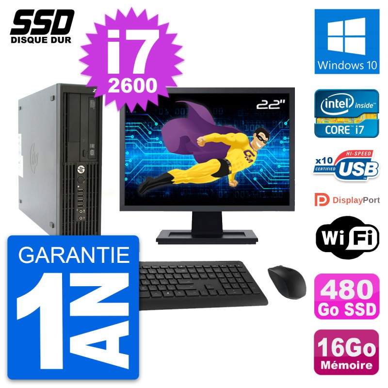 PC HP Z210 SFF Ecran 22" Intel Core i7-2600 RAM 16Go SSD 480Go Windows 10 Wifi