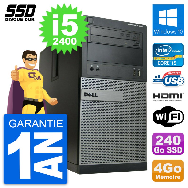 PC Tour Dell OptiPlex 390 MT Core i5-2400 RAM 4Go SSD 240Go HDMI Windows 10 Wifi