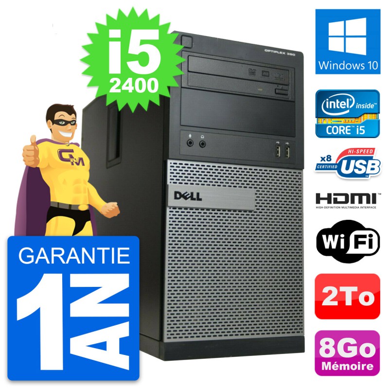 PC Tour Dell OptiPlex 390 MT i5-2400 RAM 8Go Disque 2To HDMI Windows 10 Wifi