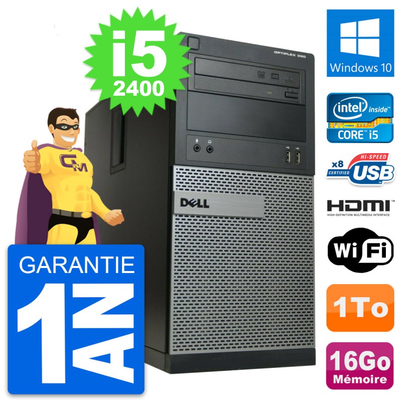 PC Tour Dell OptiPlex 390 MT i5-2400 RAM 16Go Disque 1To HDMI Windows 10 Wifi