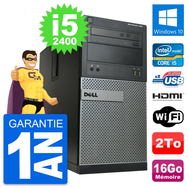 PC Tour Dell OptiPlex 390 MT i5-2400 RAM 16Go Disque 2To HDMI Windows 10 Wifi
