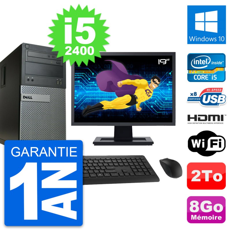PC Tour Dell 390 MT Ecran 19" i5-2400 RAM 8Go Disque 2To HDMI Windows 10 Wifi