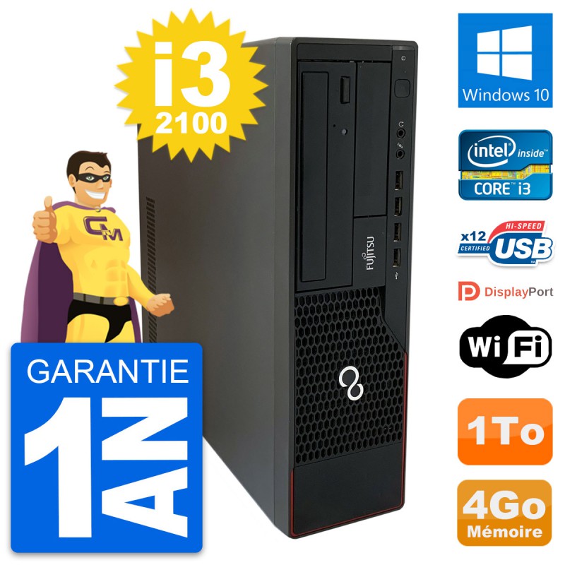 PC Fujitsu Esprimo E910 DT - Intel Core i3-2100 3.1 Ghz (3 Mo) - 4 Go DDR3 - Disque Dur 3,5" 1 To - Graveur DVD - Clef Wifi USB - Windows 10 - Garantie 1 an.