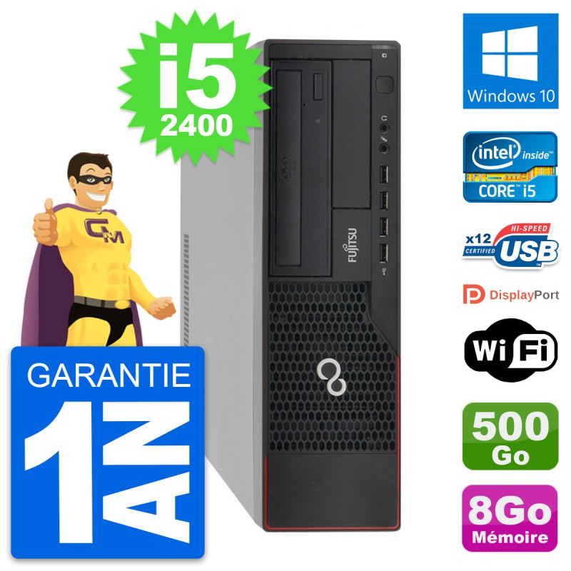 PC Fujitsu Esprimo E910 DT - Intel Core i5-2400 3.1 Ghz (6 Mo) - 8 Go DDR3 - Disque Dur 3,5" 500 Go - Graveur DVD - Clef Wifi USB - Windows 10 - Garantie 1 an.