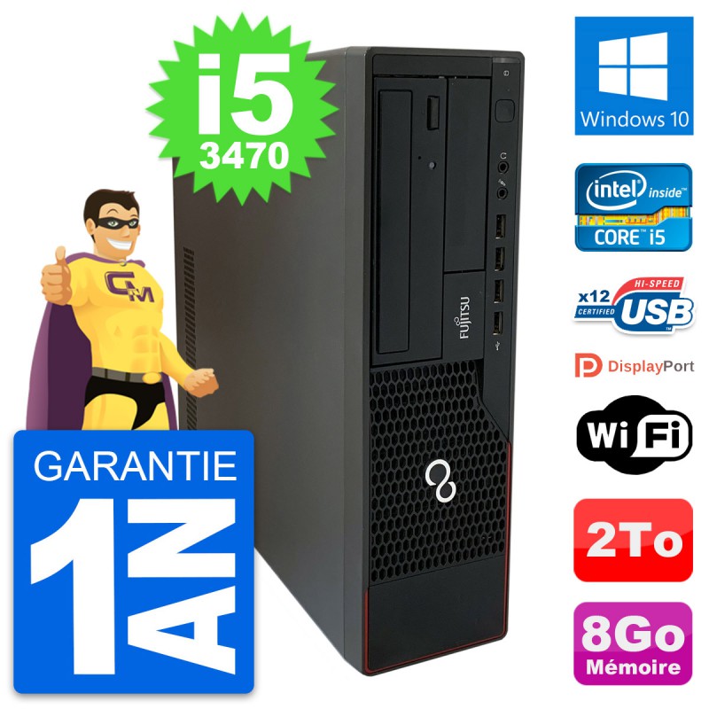 PC Fujitsu Esprimo E910 DT - Intel Core i5-3470 3.2 Ghz (6 Mo) - 8 Go DDR3 - Disque Dur 3,5" 2 To - Graveur DVD - Clef Wifi USB - Windows 10 - Garantie 1 an.
