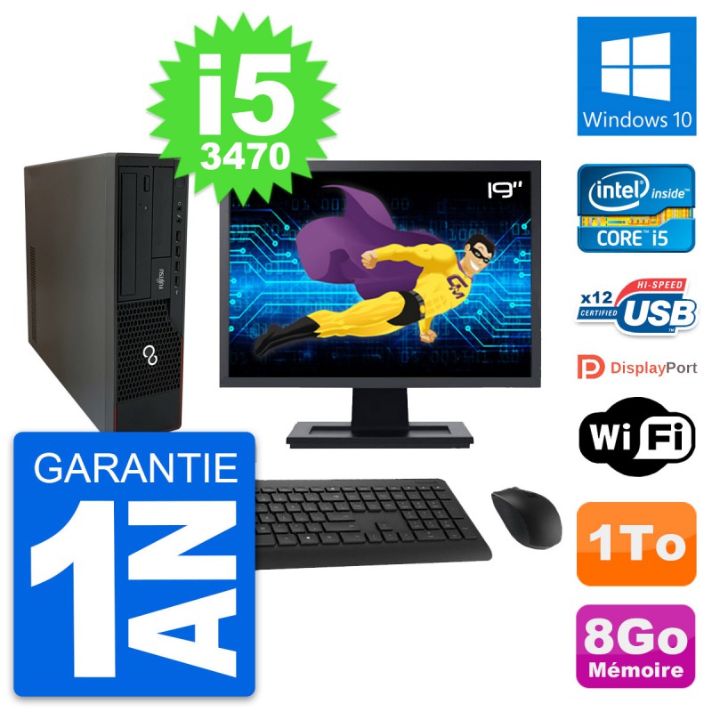 PC Fujitsu E910 DT - Intel Core i5-3470 3.2 Ghz (6 Mo) - 8 Go DDR3 - Disque Dur 3,5" 1 To - Graveur DVD - Clef Wifi USB - Windows 10 - Livré avec Ecran 19" + clavier + souris (Marques et modèles variables) - Garantie 1 an.