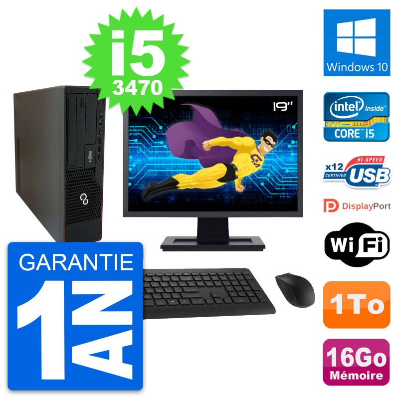 PC Fujitsu E910 DT - Intel Core i5-3470 3.2 Ghz (6 Mo) - 16 Go DDR3 - Disque Dur 3,5" 1 To - Graveur DVD - Clef Wifi USB - Windows 10 - Livré avec Ecran 19" + clavier + souris (Marques et modèles variables) - Garantie 1 an.