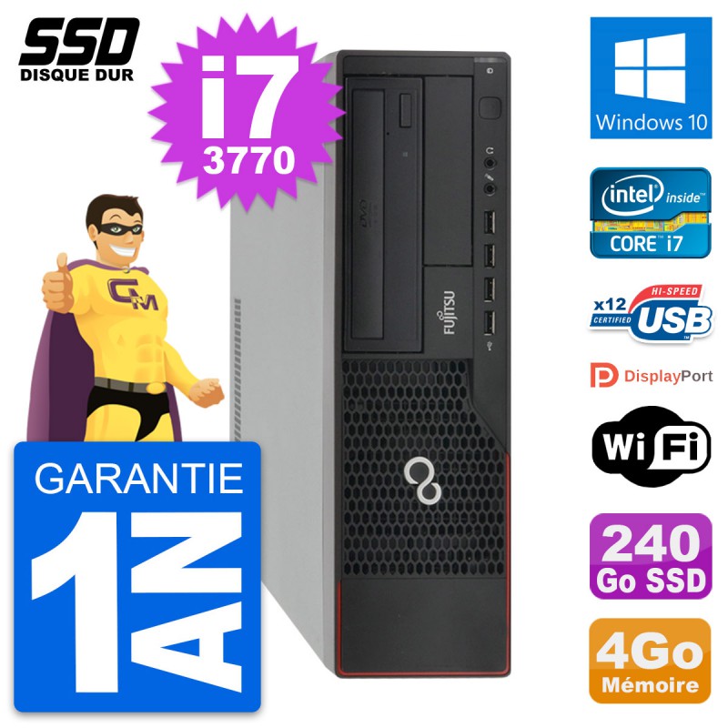 PC Fujitsu Esprimo E910 DT - Intel Core i7-3770 3.4 Ghz (8 Mo) - 4 Go DDR3 - Disque Dur SSD 240 Go - Graveur DVD - Clef Wifi USB - Windows 10 - Garantie 1 an.