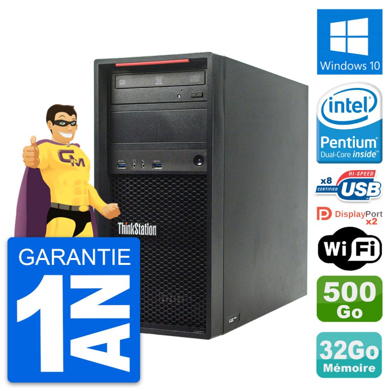 PC Tour Lenovo ThinkStation P300 MT - Intel Pentium G3220 3.0 Ghz (3 Mo) - 32 Go DDR3 - Disque Dur 3,5" 500 Go - Graveur DVD - Clef Wifi USB - Windows 10 - Garantie 1 an.