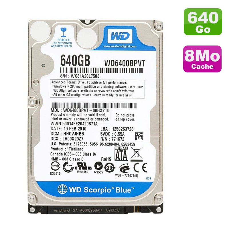 Disque Dur 640Go SATA 2.5" Western Digital Scorpio Blue WD6400BPVT Pc Portable