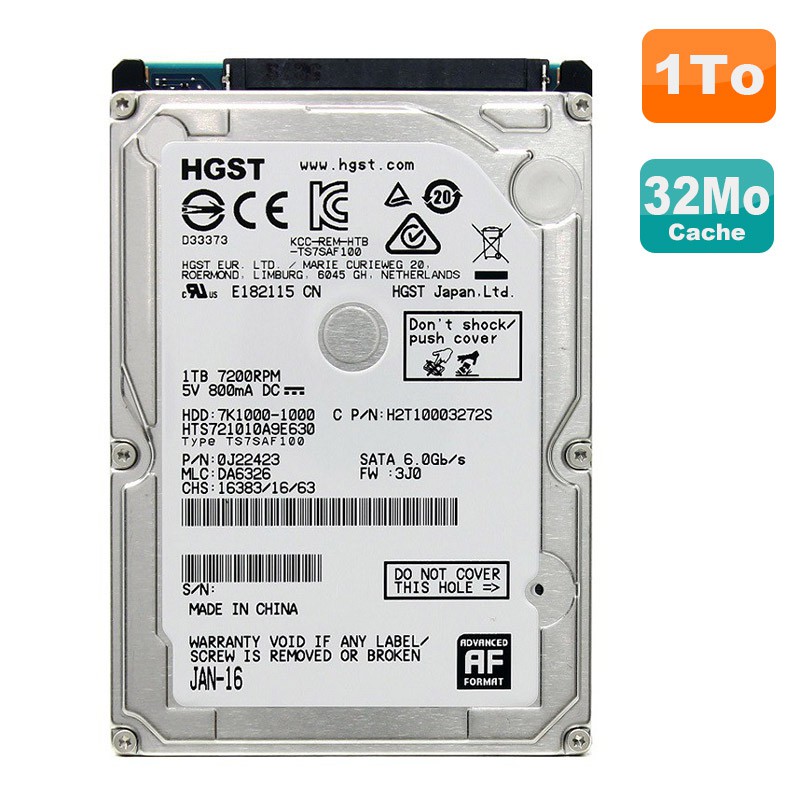 Disque Dur 1To SATA 2.5" Hgst HTS721010A9E630 Pc Portable 32Mo