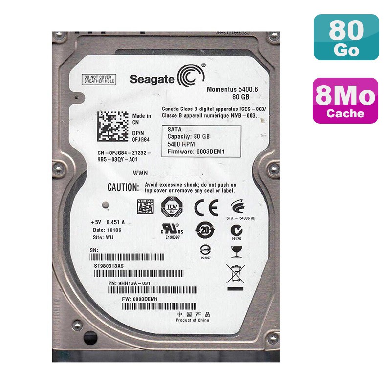 Disque Dur Interne 2.5" - Seagate Momentus ST980313AS - 80Go - SATA - 5400 RPM - 8Mo de cache - Garantie = 6 mois