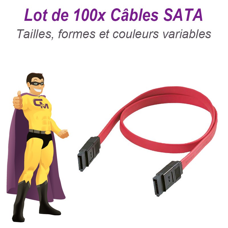 Lot de 100 câbles SATA Data - Permet de relier les disques durs et lecteurs à la carte mère - taille, formes, couleurs variables - Produit de seconde main