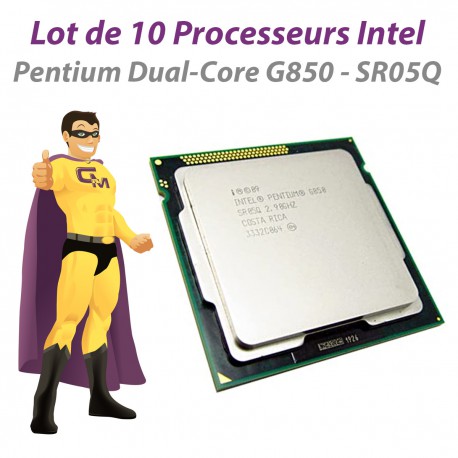 Lot de 10 Processeurs CPU Intel Pentium G850 2.9Ghz - Dual Core - P/N SR05Q - Sandy Bridge - Cache 3Mo - 5GT/s - 64 bits - Socket LGA1155 - Intel HD Graphics - Garantie 6 mois.