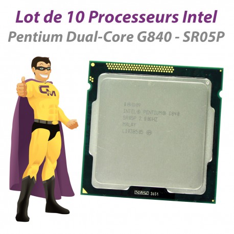 Lot de 10 Processeurs CPU Intel Pentium G840 2.8Ghz - Dual Core - P/N SR05P - Cache 3Mo - DMI 5GT/s - 64 bits - Socket FCLGA1155 - Intel HD Graphics - Garantie 6 mois.