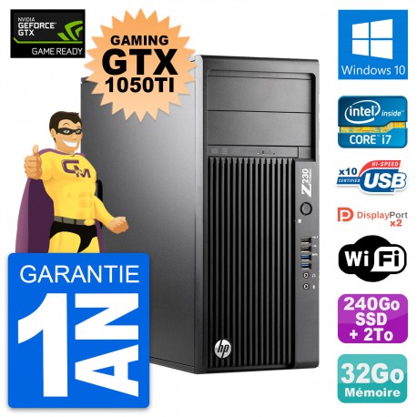 PC HP Z230 Gaming GTX 1050Ti i7-4790 RAM 32Go 240Go SSD + 2To Windows 10