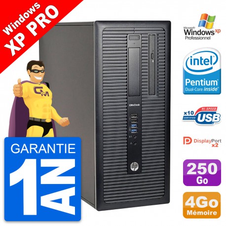 PC Tour HP EliteDesk 800 G1 MT - Intel Pentium G3220 3.0 Ghz (3 Mo) - 4 Go DDR3 - Disque Dur 3,5" 250 Go - Graveur DVD - Windows XP Pro - Garantie 1 an.