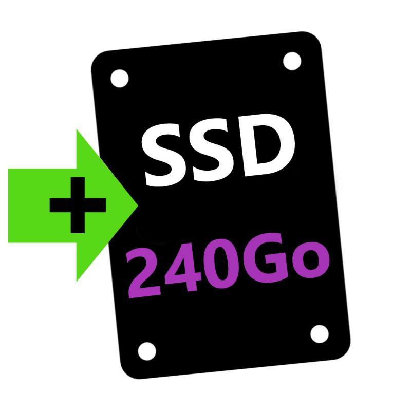 Cette option permet d'ajouter un disque SSD 240Go dans un PC disposant d'un second emplacement de disque dans le boitier. L'installation du système sera effectuée sur ce disque pour bénéficier des avantages du SSD.